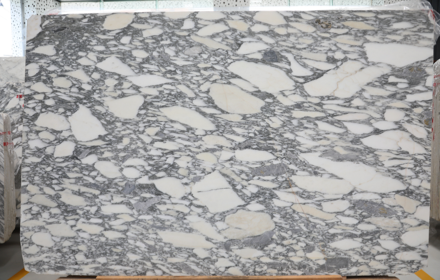 Arabescato White Marble has similar cool strong white as famous calacatta, but the busier traffic veinings distinguish it from the other members of white marble quarried in the same region of Italy. The structural grey veins swirls around forming various shapes of cool white bubbles giving it distinctive and bold patterns. Arabescato is generally speaking with less defect and more intact quality compared to Calacatta, but more friendly in pricing. The beautiful white and the dramatic patterns ranks it a valuable and inalterarable choice for many designers, homeowners and architects studios.